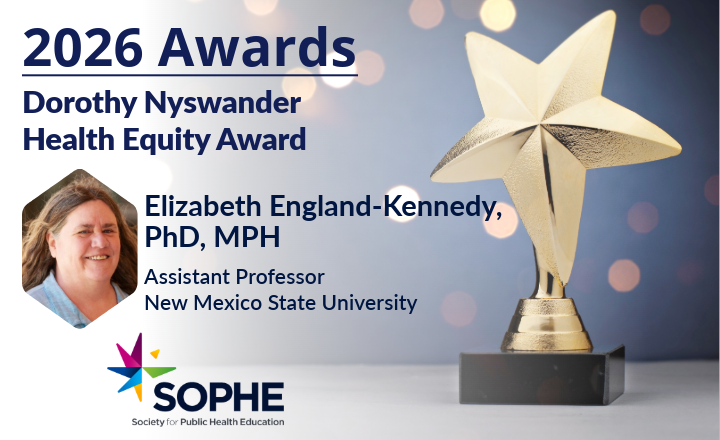 ALEXANDRIA, VA – The Society for Public Health Education (SOPHE) is proud to announce that Elizabeth England-Kennedy will be awarded the Dorothy Nyswander Health Equity Award during the 2026 SOPHE Annual Conference in Portland, April 22-24.