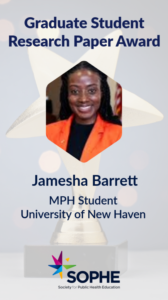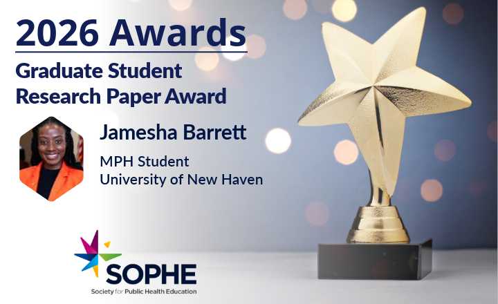 ALEXANDRIA, VA – The Society for Public Health Education (SOPHE) is proud to announce that Jamesha Barrett will be awarded the Graduate Student Research Paper Award during the 2026 SOPHE Annual Conference in Portland, April 22-24.