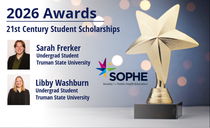 ALEXANDRIA, VA – The Society for Public Health Education (SOPHE) is proud to announce that Libby Washburn and Sarah Frerker will be awarded the 21st Century Student Scholarships during the 2026 SOPHE Annual Conference in Portland, April 22-24.
