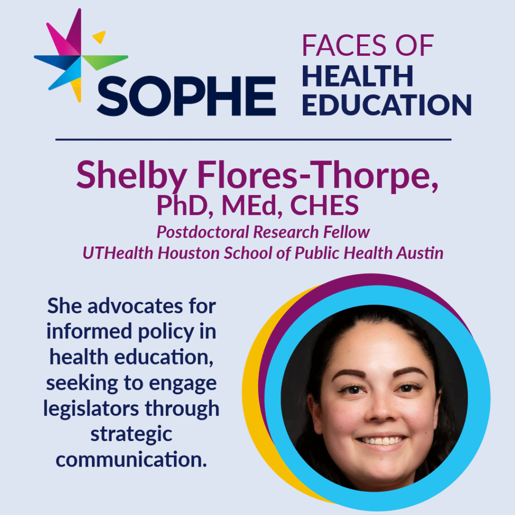 As a postdoctoral fellow who works to bring health research to state-level politicians in order to inform policy, Dr. Shelby Flores-Thorpe understands the importance of tailoring her message based on her audience.