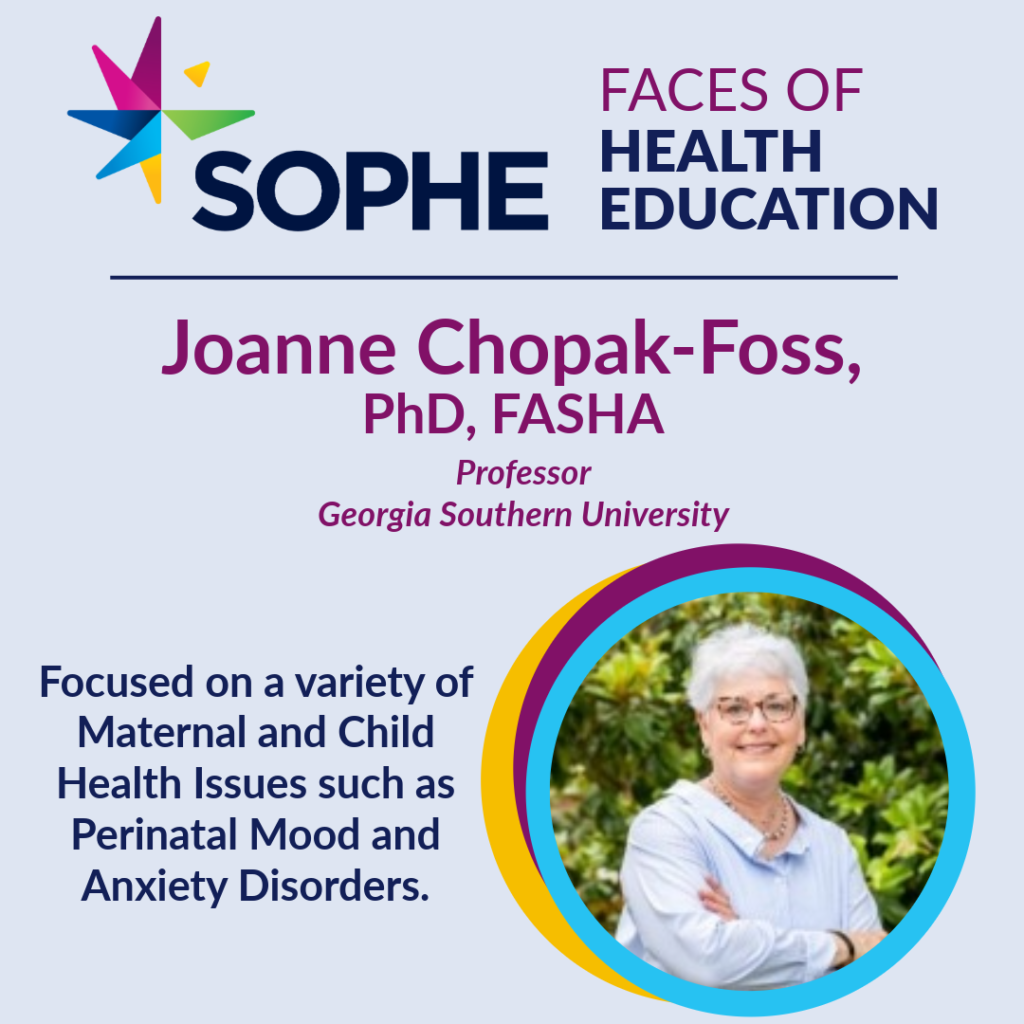 Joanne Chopak-Foss is a woman who can be called many different things: health educator, researcher, maternal mental health professional, professor, mother. As a health professional, she has excelled at her work. As a mother, she values the experience of raising her son. But what happens when these two worlds collide? The truth is women do not stop being mothers when they stop working, they do not stop being health educators and are not stripped of their Ph.D’s when they have children. Rather, their identities simply grow.